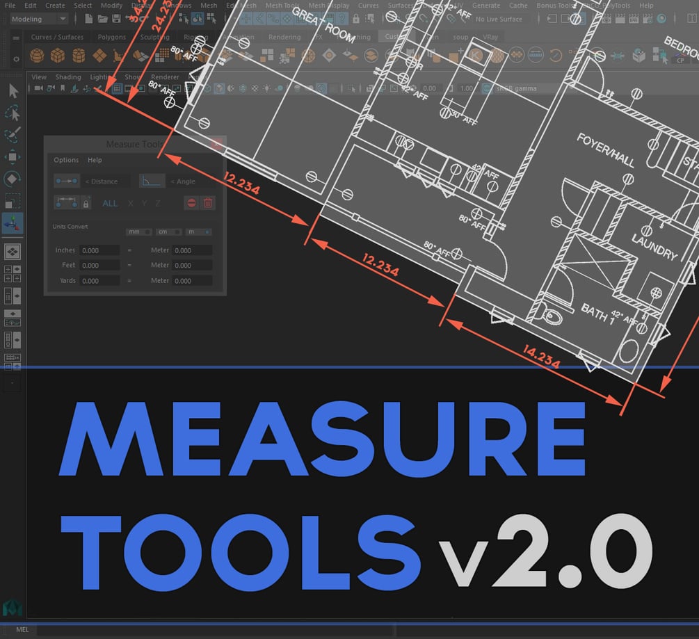 Measure Tool - is aimed for those who frequently use Maya's Distance Tool for measuring your objects, or distance between them, but also find it very clunky to use. This is a small utility, a helper, which makes Maya measuring tool "Distance Tool" a bit more quick and fun to use but also more useful and interactive on top of it.